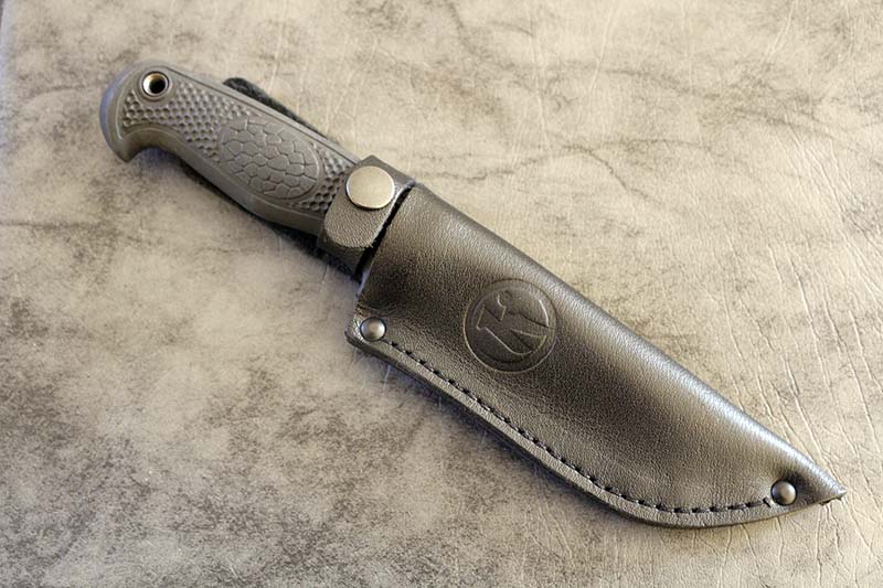 Rybářský nůž, kožené pouzdro, rukojeť z materiálu Elastron-G. Novinka roku 2014.