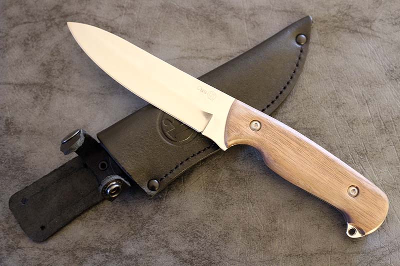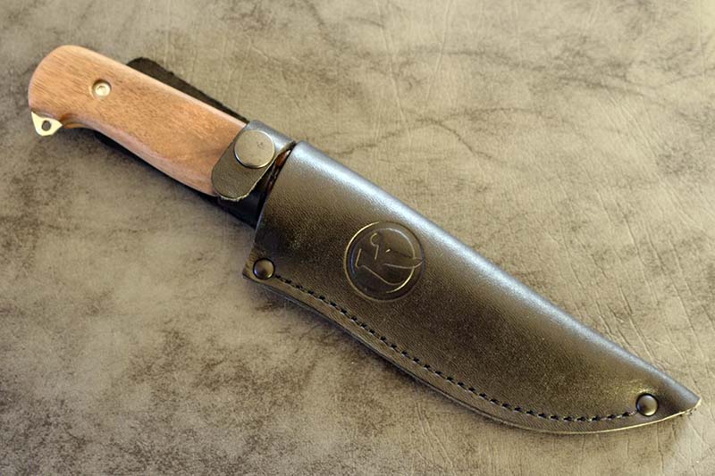 Lovecký nůž, kožené pouzdro, rukojeť z kavkazského ořechu. Novinka roku 2014.
