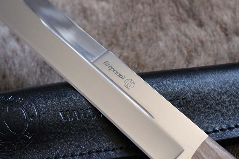 Nože jsou vyráběny z ruské nerezové, uhlíkové a v neposlední řadě vysoce kvalitní Damaškové oceli vlastní produkce. V základním provedení se používá ocel 65X13. Po zakalení na tvrdost 57-59 HRC umožňuje tato ocel udržet dlouhou dobu vynikající řezné vlastnosti. Čepele nožů jsou odlišné díky návratu k tradicím, které zahrnují zdobení různými dekorativními motivy, kterými mohou být scény z lovu, obrázky divokých zvířat a ptáků, nebo tradičně stylizovaný rostlinný motiv. V poslední době výrobce používá kromě ručního způsobu leptání i nejmodernější lasery pro gravírování motivů na čepele. Dále může být každý výrobek zdobený stříbrem, alpakou nebo černěný. Pro každý nůž nebo šavli se jednotlivě vyrábí pouzdro, které může být také zdobené tradičními motivy.